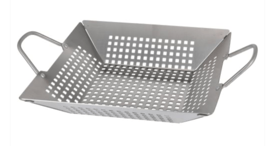 Grillpande i børstet stål. Måler 30 x 30 cm.
