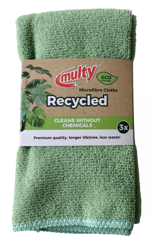 Microfiberklud, 100% genanvendt materiale - 3 stk. Kraftig microfiberklud til tør og våd rengøring. Måler 35 x 35 cm.