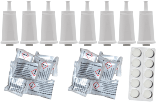 Her får du alt hvad du behøver for at holde din Sage espressomaskine i topform. 8 styk vandfiltre + 12 styk afkalkningstabletter - Fjerner kalkaflejringer og beskytter mod korrosion, 10 styk rensetabletter til fjernelse af kaffeolier.