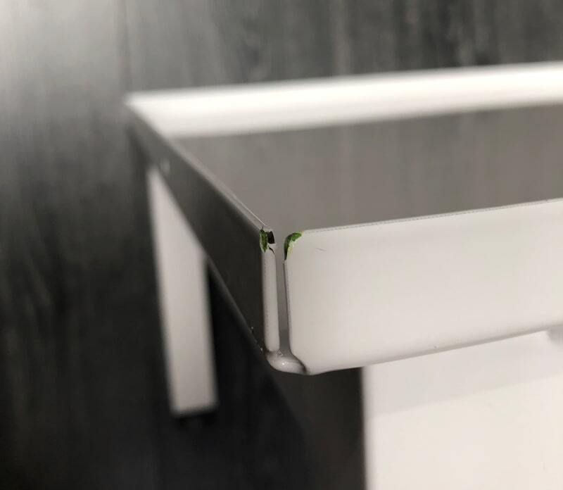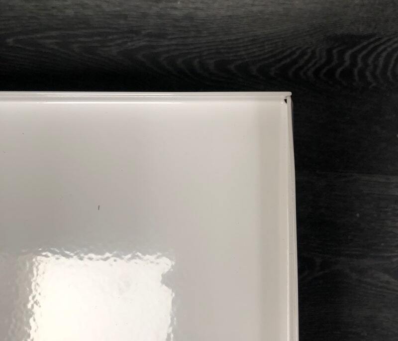 Varen er ny, men har fået et tryk i toppen af den ene side samt en lakskade (bagside) - se billede!
